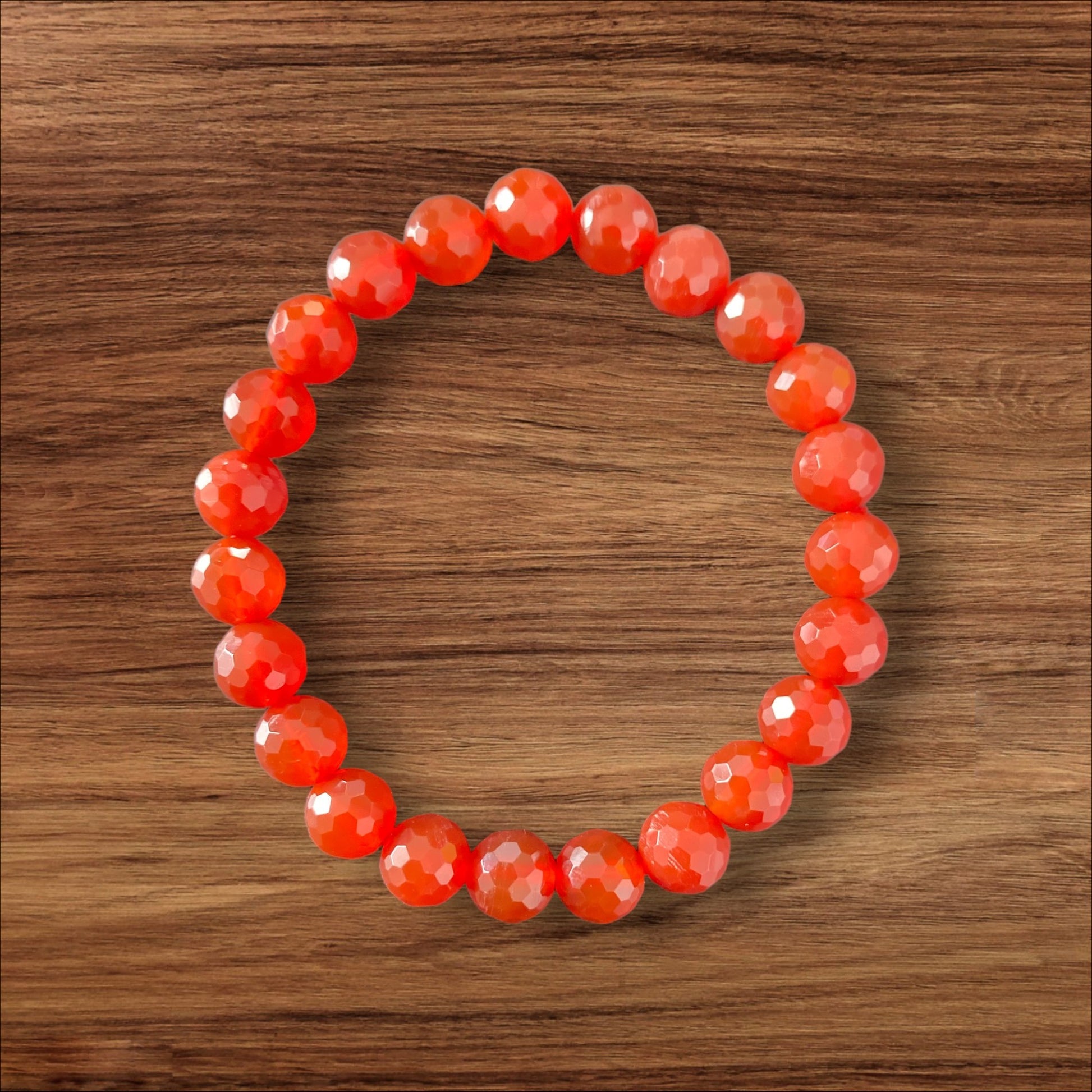 7 inch 8mm Carnelian Bracelet Round Faceted Beads - NEW324